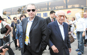 昨日,國際奧委會主席羅格(左)、榮譽主席薩馬蘭奇參觀奧運村