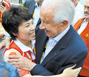 昨日,薩馬蘭奇與鄧亞萍相擁問候 國際奧委會主席羅格和國際奧委會終身榮譽主席薩馬蘭奇昨天趕到北京奧運村,體驗北京給奧運帶來的特色和激情。 進村,主席研究安檢機器 昨天,記者獲悉羅格和薩馬蘭奇要到奧運村,上午7點就乘大巴趕到奧運村。記者注意到,這里并沒有任何歡迎的標志。11點30分,一輛奧運大巴駛達奧運村大門,車上坐了20多人。羅格率先走下來,然后是薩馬蘭奇,前來歡迎羅格的是全國人大常委會副委員長、北京奧組委副主席、北京奧運村村長陳至立。 進入奧運村大門時,安檢口的機器吸引了羅格的注意,他非常感興趣地看了一會,不過他并沒有親身體驗這臺設備。 擁抱,薩馬蘭奇鄧亞萍最親 羅格和薩馬蘭奇一前一后走進奧運村,但歡迎的人并不多,包括工作人員和志愿者,也就10多人。進村后,北京奧組委奧運村部副部長鄧亞萍早已恭候多時,薩馬蘭奇和她來了一個親熱的擁抱。在隨后的大多數時間里,薩馬蘭奇都和鄧亞萍在一起,兩人開心地聊著。兩人認識十多年,關系非常好,有許多要說的話,大家都知道這一點,因此他們談話,也基本沒什么人打擾。一路上,鄧亞萍詳細向薩馬蘭奇介紹奧運村的各種情況,薩馬蘭奇邊聽邊頻頻點頭。 龍王廟,羅格留下中文簽名 在工作人員指引下,羅格和薩馬蘭奇直接趕到國際區的漢語屋和工藝屋,這里是外國運動員學習漢語的地方。逗留短短幾分鐘后,受陳至立邀請,羅格和薩馬蘭奇一行進入了村長院。這是一座興建于明朝的四合院,以前是一座龍王廟。經過翻新的龍王廟高墻、紅門氣勢非凡。羅格、薩馬蘭奇一行穿過兩座巨大石獅走進村長院大門。在村長院里的羅格興致高昂,還在紅色的簽名帖上留下了祝福的話,而在英文祝福上面,他還特意用中文寫下“羅格”兩個字。 羅格當天還將自己的中文簽名留在奧運村月亮門狀的和平友誼墻的簽名墻上。“希望這面和平友誼墻能像中國另外一座"墻"長城一樣長久保存,”羅格說。 自雅典奧運會發起“休戰墻”簽名活動后,奧運會主辦城市都會在奧運會賽時建立“奧林匹克休戰墻”。北京奧運會結合中國傳統的“和合”理想,將奧林匹克休戰墻命名為和平友誼墻。 中午1點,已在奧運村里參觀了1個多小時的羅格和薩馬蘭奇受到了東道主熱情的邀請——品嘗奧運村的美食。 奧運村餐廳的菜品非常豐富,每天要提供600只北京烤鴨,7天菜品不重復。不過昨天奧運餐廳究竟為羅格一行提供了什么樣的美食,由于媒體無法進入,大家并不清楚。就在羅格一行就餐時,有記者開玩笑地說:“羅格肯定吃了北京烤鴨!來北京不吃烤鴨,簡直不可能。” 本報北京專電 特派記者 周曉亮 廖宇翔 羅晶 |