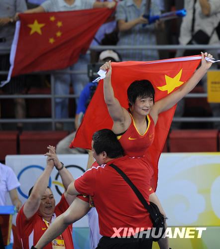8月17日,在中國農業大學體育館舉行的北京奧運會摔跤女子自由式72公斤級決賽中,中國選手王嬌戰勝保加利亞選手絲坦卡·茲拉特娃,奪得冠軍。這是王嬌獲勝后慶祝。新華社記者李鋼攝
