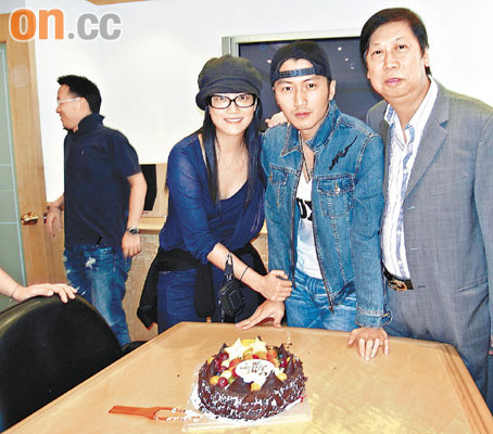 霍汶希與吳雨為霆鋒(中)慶祝生日