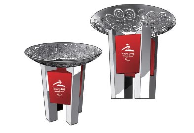 圣火盆的設計以中國傳統的“鼎”和北京殘奧會核心圖形“祥云”為設計元素