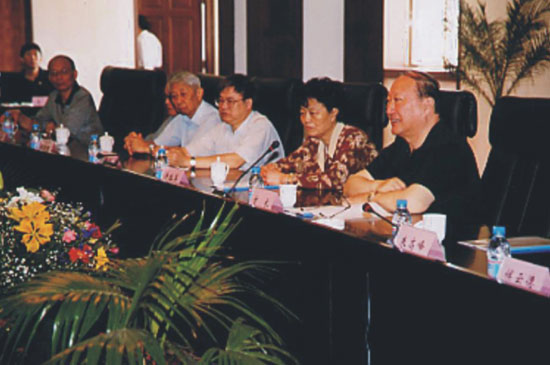 2003年9月28日,原全國政協副主席徐匡迪(右一)考察大榭
