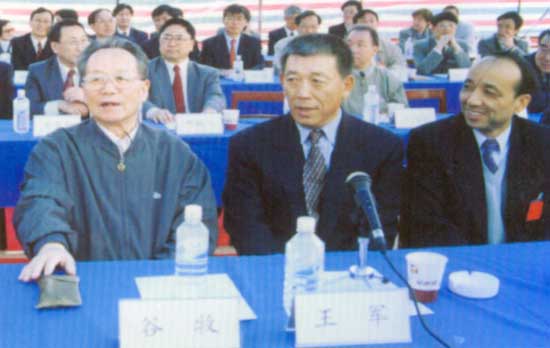 1997年4月9日,原全國政協(xié)副主席谷牧(左一)出席大榭跨海大橋奠基儀式