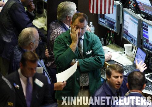 2008年10月2日美國股市三大股指走低10月1日,交易員在美國紐約證券交易所工作。由于投資者對美國參議院能否通過政府修改后的金融援救計劃持謹慎態度,以及美國9月份制造業萎縮速度加快,當日紐約股市三大股指均收低。新華社/路透