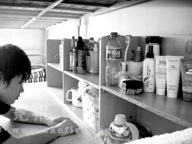 妮維亞的男士洗面奶,伊麗莎白·雅頓的潤膚乳、爽膚水,李醫生的護手霜……你以為擺滿這些瓶瓶罐罐的是女大學新生宿舍嗎?那可就錯了!這是記者在某高校計算機系90后男生宿舍見到的。這還不是個別現象,記者調查發現這個現象相當普遍。