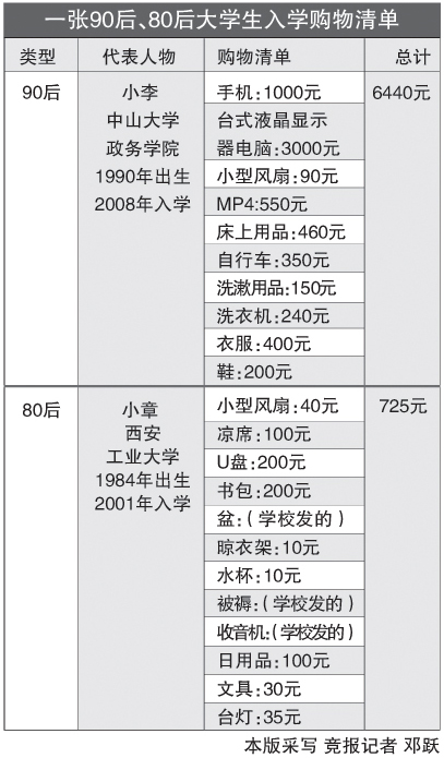 除此之外,MP4、i-Phone手機、PSP、名牌籃球鞋……還有很多學生帶著這樣一大堆令人眼花繚亂的裝備走入校園。