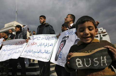 外媒關注布什遇襲:"鞋,射向布什的愛國者導彈"