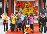 踩高蹺,是民間盛行的一種群眾性技藝表演。高蹺本屬我國古代百戲之一種,早在春秋時已經出現。我國最早介紹高蹺的是《列子·說符》