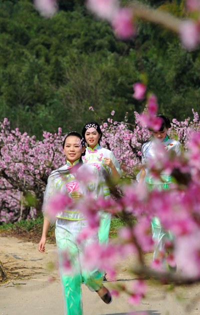 曲藝團隊、曲藝愛好者在桃花叢中敘說春意盎然。