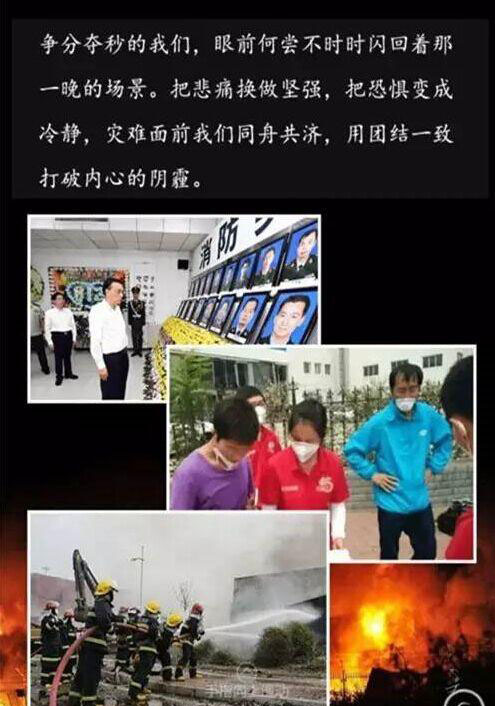 當濃重的煙霧漸漸消散,當敬愛的消防戰士平安歸來,當一個個謠言在真相下不攻自破,往日的焦慮、擔憂逐漸平復,我們終將走出內心的陰霾。災難終將過去,然而歷史留下的傷痛值得銘刻在每個人的心頭。今天是爆炸遇難者的頭七,在緬懷逝者的同時,讓我們化悲痛為力量,同舟共濟,祈福天津!