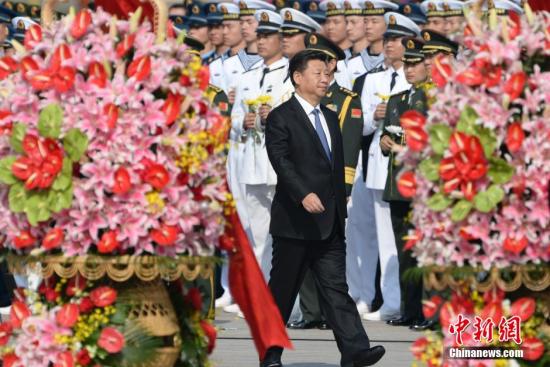 9月30日,烈士紀念日,向人民英雄敬獻花籃儀式在北京天安門廣場人民英雄紀念碑前舉行,習近平等黨和國家領導人出席儀式。 中新社記者 廖攀 攝