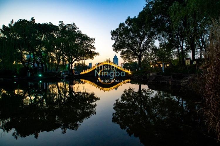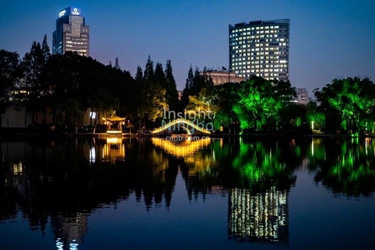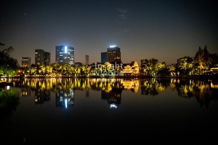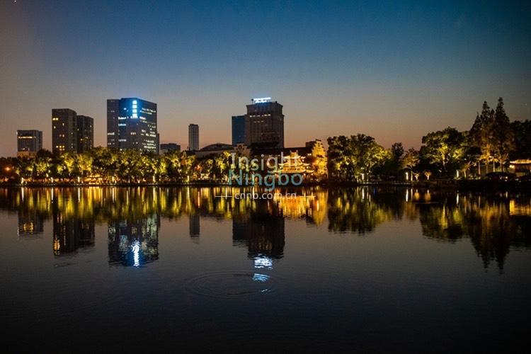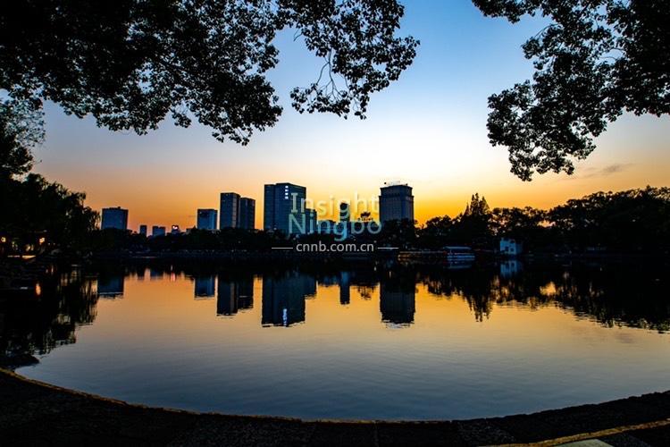 11月11日黃昏時分,月湖寧靜、優雅。星星點點的燈光與落日余暉交相輝映,夜色撩人,如夢似幻。(記者徐能 通訊員忻之承)