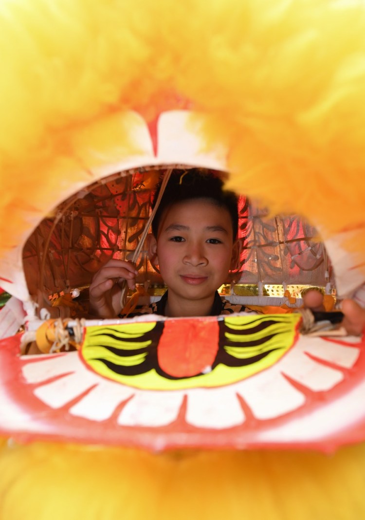 Thanks to Tong's efforts, many students joined the lion dance team in the town and they often practice lion dance in