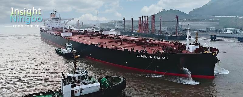 日前,寧波舟山港大榭實華碼頭迎來2023年新年的首艘超大型油輪靠泊。這艘“伊蘭特”超大型油輪船長329.99米,總載重噸299999噸,本次從阿聯酋沙奎載運了271870.99噸原油到大榭實華碼頭,計劃停靠約48小時,卸貨135935噸。據了解,2022年,寧波舟山港寧波海域原油吞吐量達7285.7萬噸,成品油進出港2164.6萬噸,LNG接卸量529.8萬噸,油氣戰略儲備能力、原油加工能力、成品油生產和供應能力穩步提升。北侖區供圖
